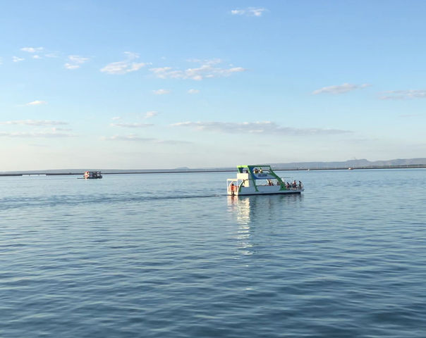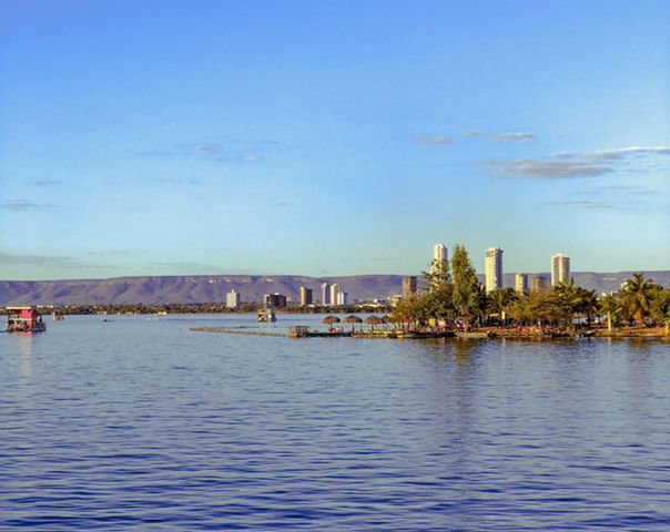 De um lado, o amplo lago, com orla repleta de bares, restaurantes e flutuantes. Do outro, a serra, que garante uma vista privilegiada da cidade.